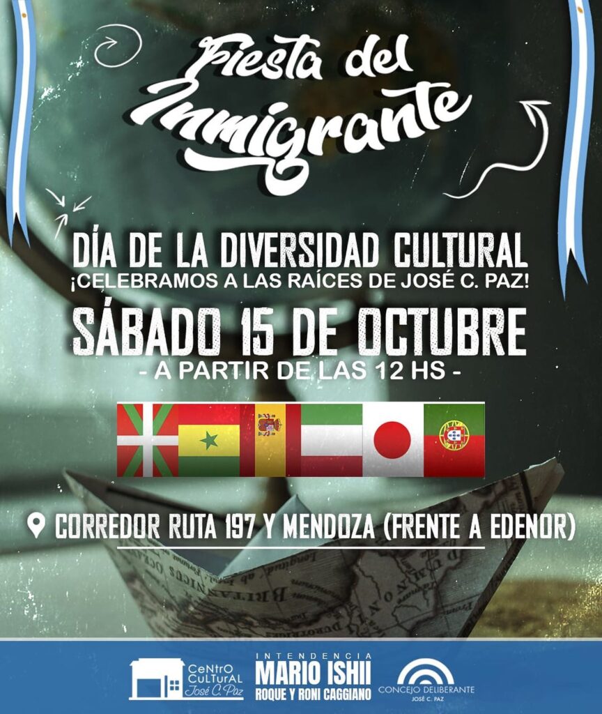 Este sábado 15 de octubre, por primera vez todas las comunidades inmigrantes, clubes e instituciones históricas de José C. Paz se unirán para celebrar el Día del Respeto a la Diversidad Cultural.