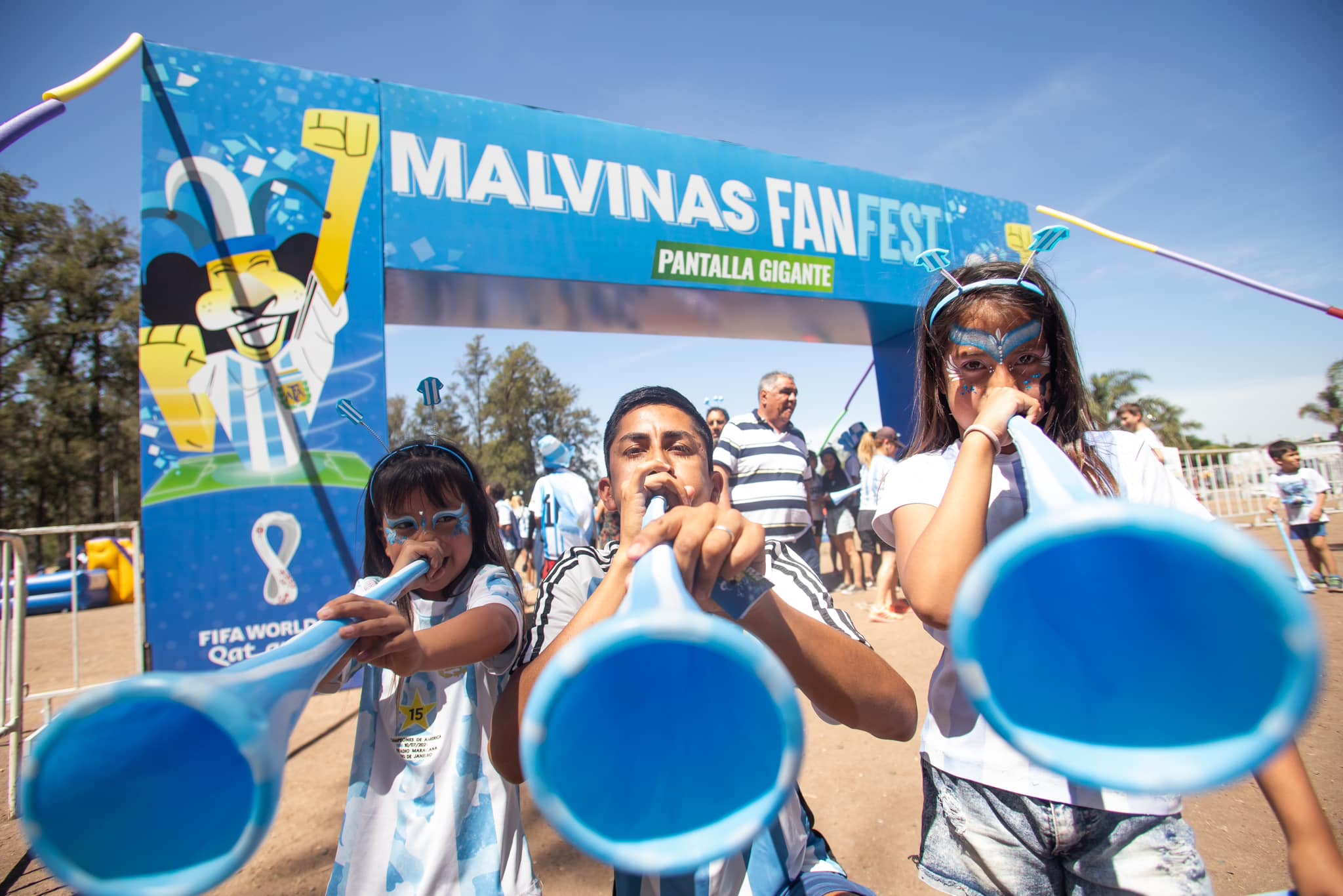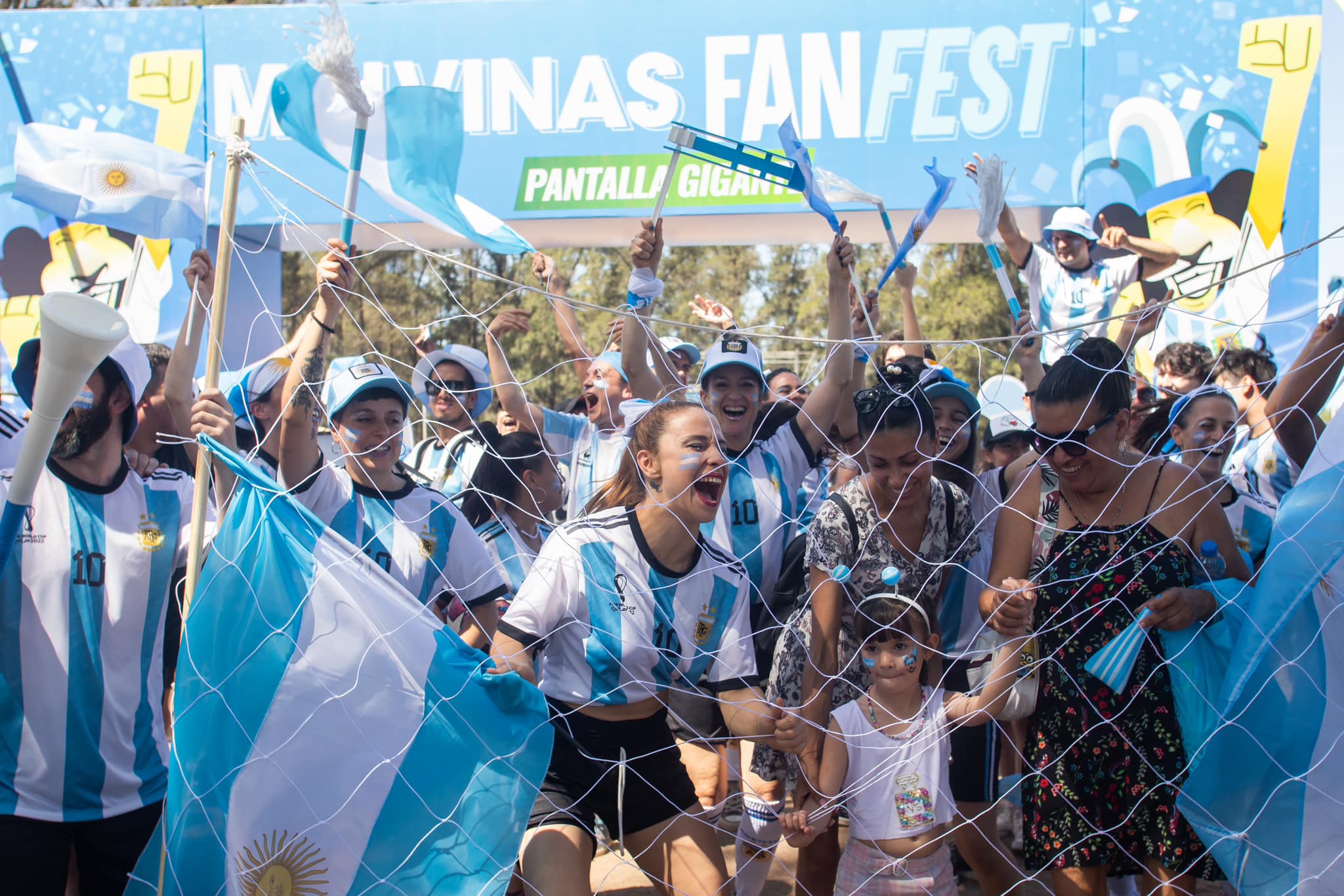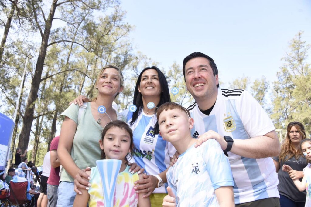 El show central del evento, el partido de fútbol tan esperado, será transmitido en vivo en pantalla gigante, a partir de las 16 horas. Este Mundial se siente y se vive con pasión en Malvinas Argentinas.