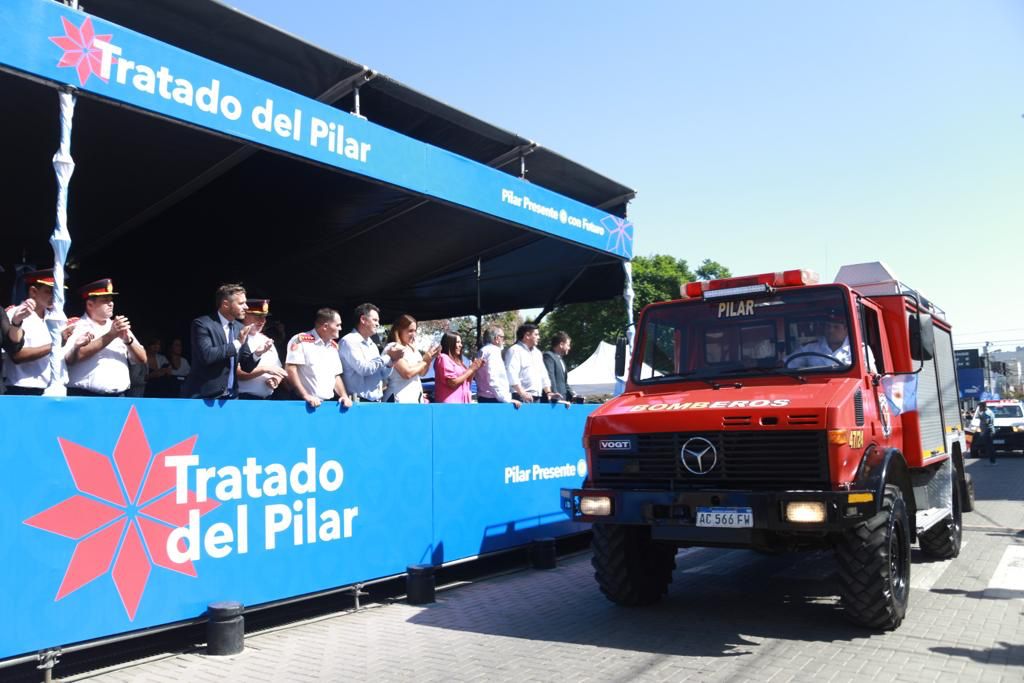 Abriendo la actividad, Achával expresó: «Este desfile nos da la posibilidad como pueblo de reflexionar sobre nuestra historia y cómo nos trae a este presente, con la mirada sobre el futuro. El Tratado del Pilar tiene un mensaje de paz, de encontrar soluciones a través del diálogo para formar algo más grande que nos incluya a todos. Es un mensaje de búsqueda del desarrollo y hoy Pilar marca el rumbo».