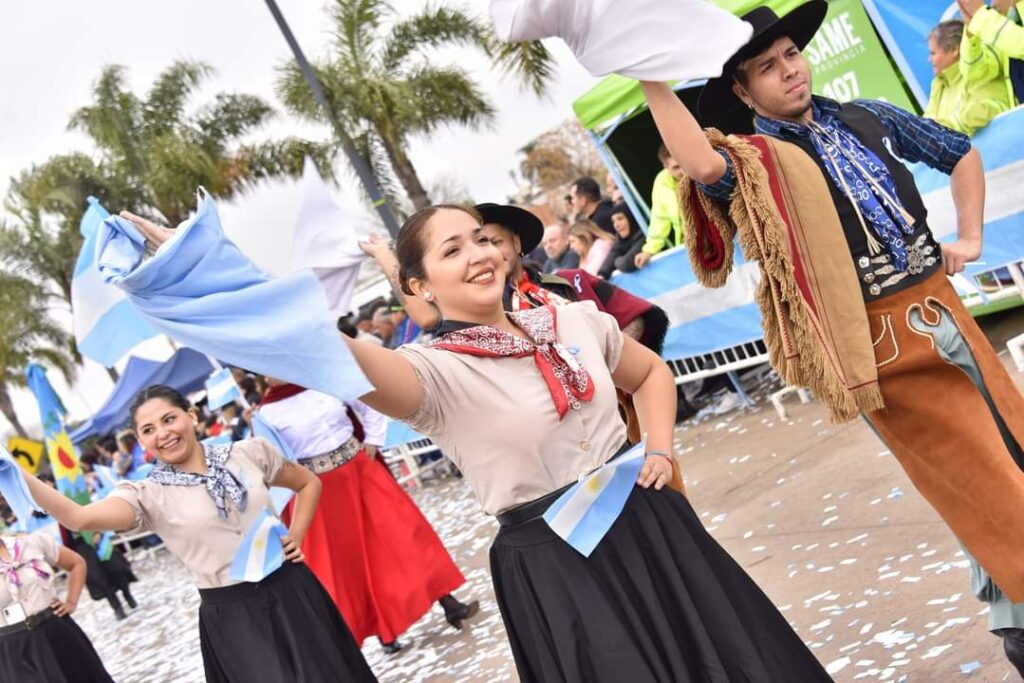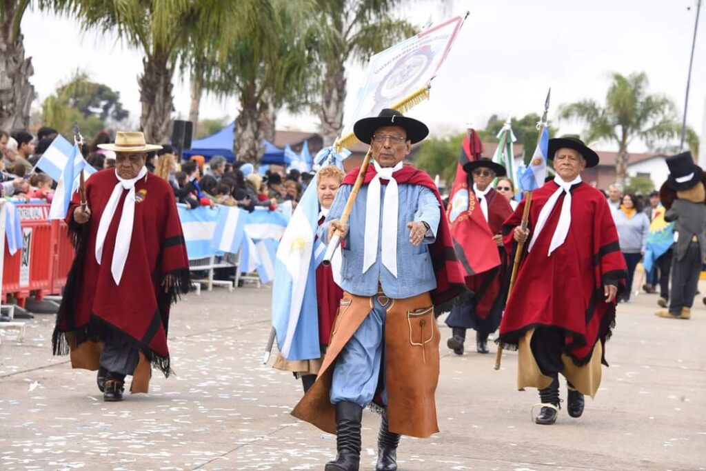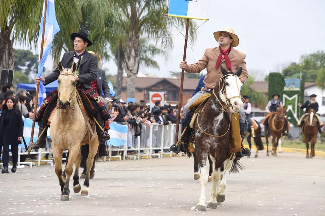 El Himno Nacional Argentino, sonó en la versión de la “Banda Big Band” y fue interpretado en lenguaje de señas por parte de los alumnos de Centro Municipal de Estudios y la Asociación Sorda de Fútbol. Luego hubo una suelta de palomas, y el desfile comenzó con un show de bombos y malambo. Como parte de la pasada gaucha, desfilaron distintos centros tradicionalistas, con más de 100 caballos.