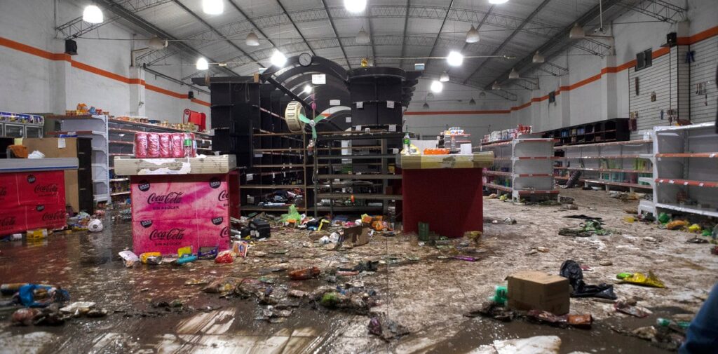 Una vecina del barrio, que fue testigo del saqueo, contó: «Impresionante la cantidad de botellas alcohólicas que se llevaban. Al final sí robaban fideos y comida, pero al principio era todo alcohol».