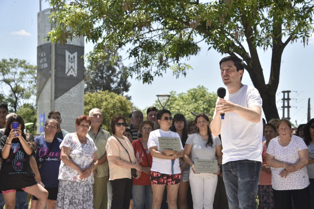 Leo Nardini, dijo:“Se trata de invertir en la recuperación del espacio público, en un lugar que llamábamos ‘plaza’ pero que era un campo pelado. Hoy, estamos acá, invirtiendo para que lo disfrute la familia y para rememorar la historia”. “Martín Figueroa, fue un laburante, electricista, vecino de Villa de Mayo y Hugo Basiglio, es otro vecino malvinense que también recordamos. Juntos tuvieron el trabajo de refaccionar la sede de la AMIA, en donde perdieron la vida en aquél terrible atentado”, rememoró Nardini.