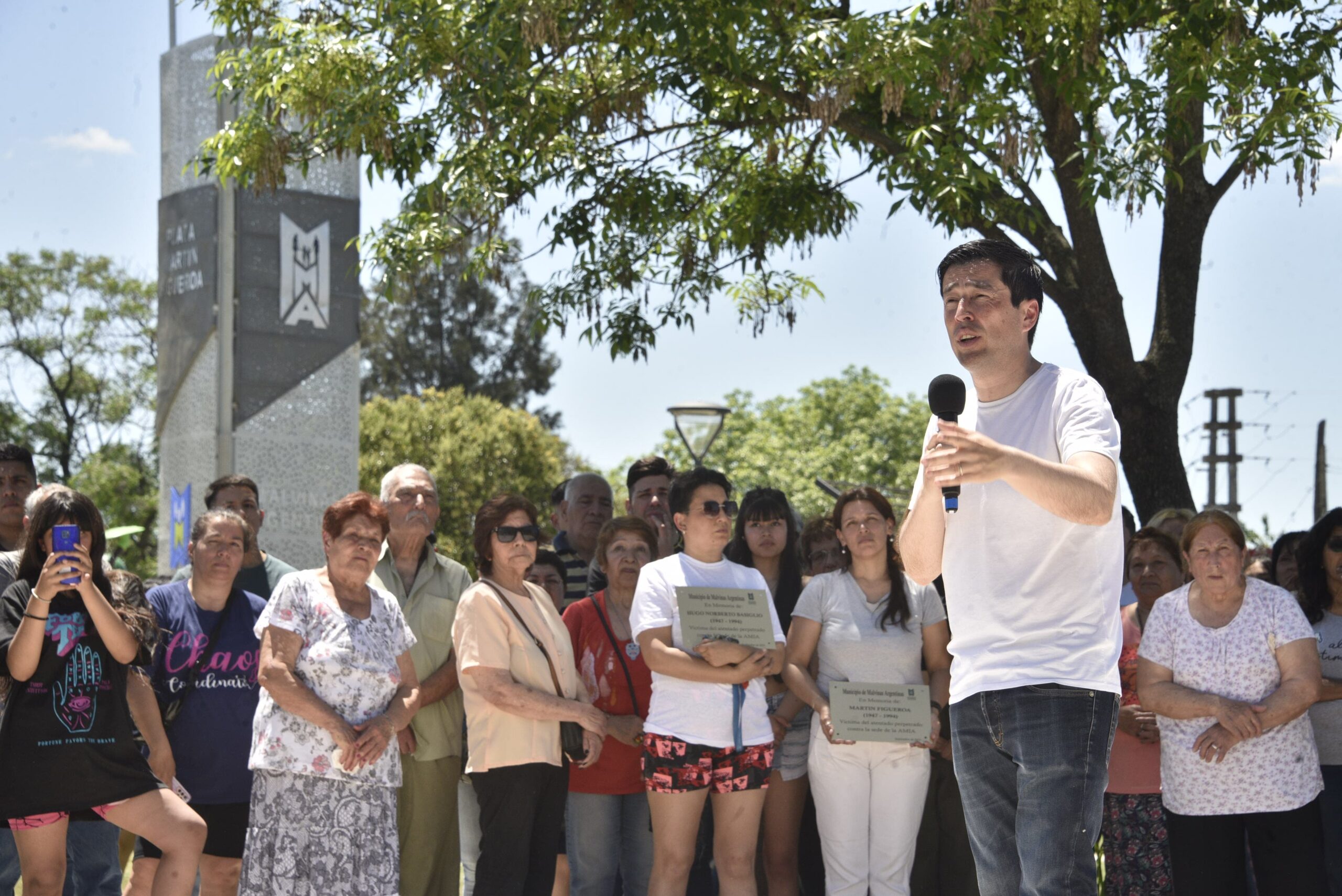 Pamela, hija de Martín Figueroa, comentó que “desde 1996 la familia y los vecinos esperamos que el proyecto solicitado se apruebe, pedido que fue rechazado por gestiones anteriores ” y en ese momento, cuando Luis Vivona era concejal, fue que se aprobó. “Tuve la posibilidad de haber presentado una ordenanza que permitió que esta plaza hoy se llame ‘Martín Figueroa’ para el recuerdo de todos los vecinos, y para nunca olvidar”, relató Vivona.