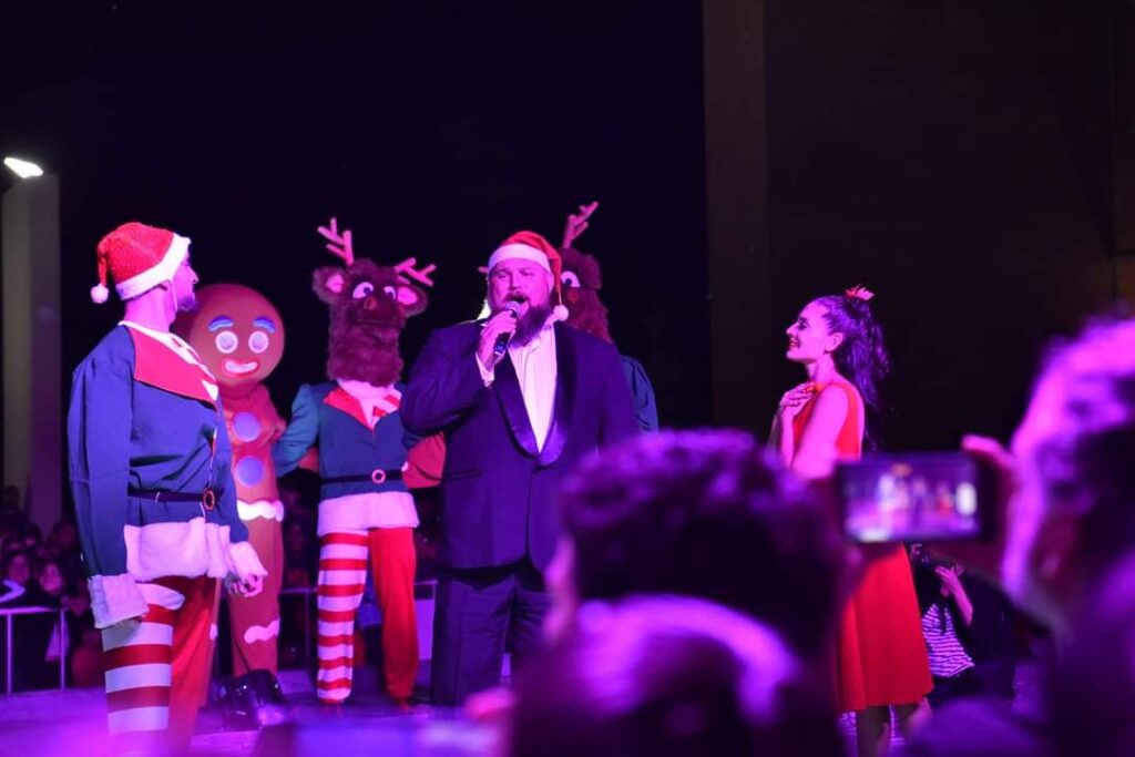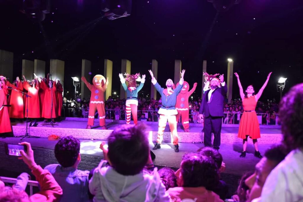 Luego, comenzaron a sonar villancicos mientras diferentes amigos de Papá Noel, bailaban en el escenario. Acto seguido, las luces del arbolito navideño se encendieron, mientras caía una espuma que simulaba ser nieve.
