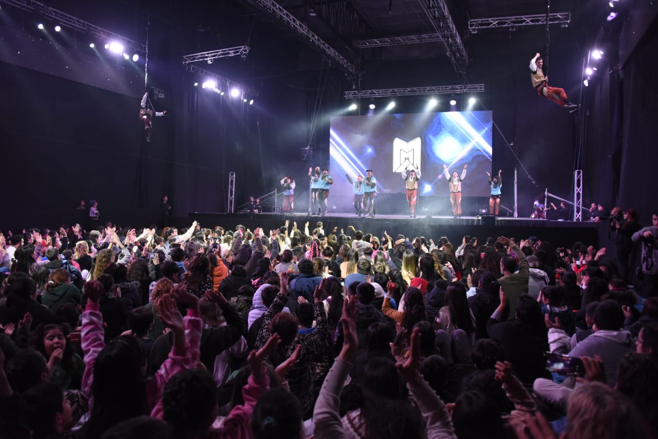 Leo Nardini estuvo junto a las familias en la primera función del espectáculo, en el Polideportivo Braian Toledo. Un show con acrobacia, bailarines en escena, Djs y muchas sorpresas. Esta es una de las propuestas para estas vacaciones de invierno, con tres funciones diarias.