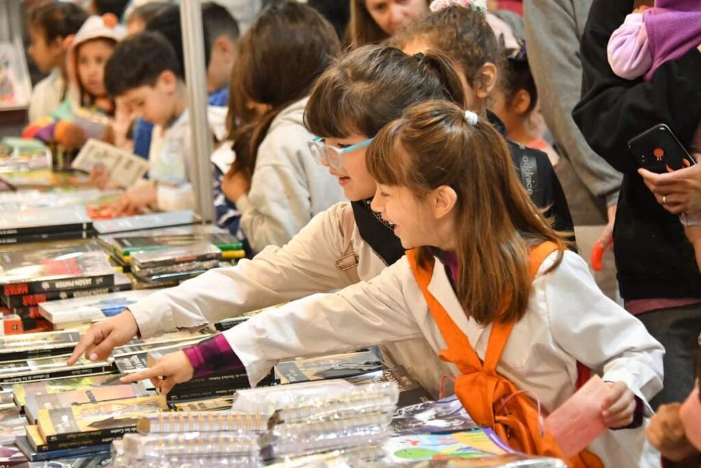 Los alumnos del distrito de los niveles inicial, primario y secundario, que concurrieron de manera institucional recibieron un “chequelibro” que pudieron usar en cualquiera de los stands, para que cada chico y adolescente en edad escolar, se vaya de la Feria con un libro.