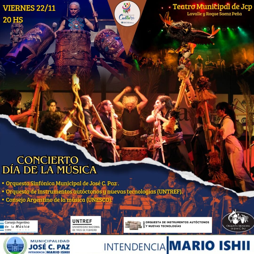 El 22 de noviembre se viene algo único e histórico en José C. Paz, por primera vez los festejos del Consejo Argentino de la Música (con sede en la UNESCO) y la orquesta de Instrumentos Autóctonos y Nuevas Técnologías vendrán al municipio paceño.