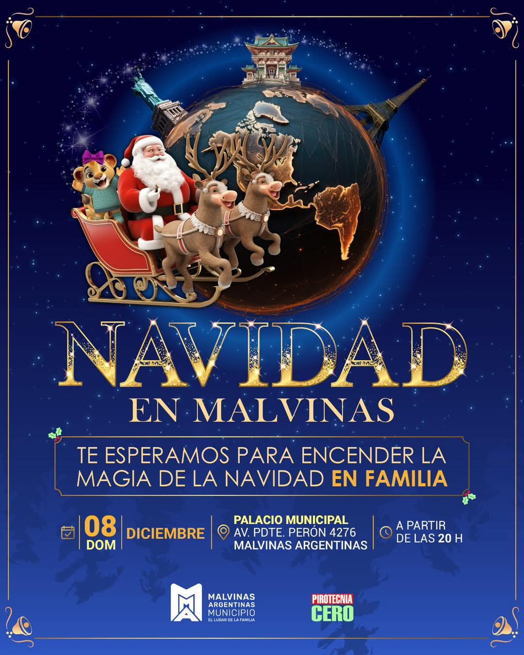 El municipio de Malvinas Argentinas se prepara para compartir con las infancias y las familias una mágica navidad. El domingo 08, el encuentro será en las inmediaciones del Palacio Municipal (Av. Pte. Perón 4276) a partir de las 20 horas. Ese día se enciende la navidad en Malvinas, con un show imperdible de luces, colores y fantasía. Se prenderán las luces del árbol por primera vez, estará el pesebre y mucho más.