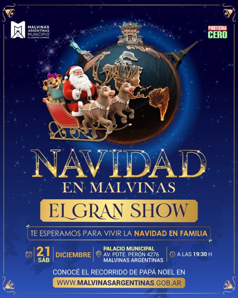 El municipio de Malvinas Argentinas se prepara para un evento único que coronará su agenda navideña: el Gran Show Navideño, este sábado 21 de diciembre desde las 19.30 horas en las inmediaciones del Palacio Municipal, ubicado en Av. Presidente Perón 4276, ciudad de Malvinas Argentinas.