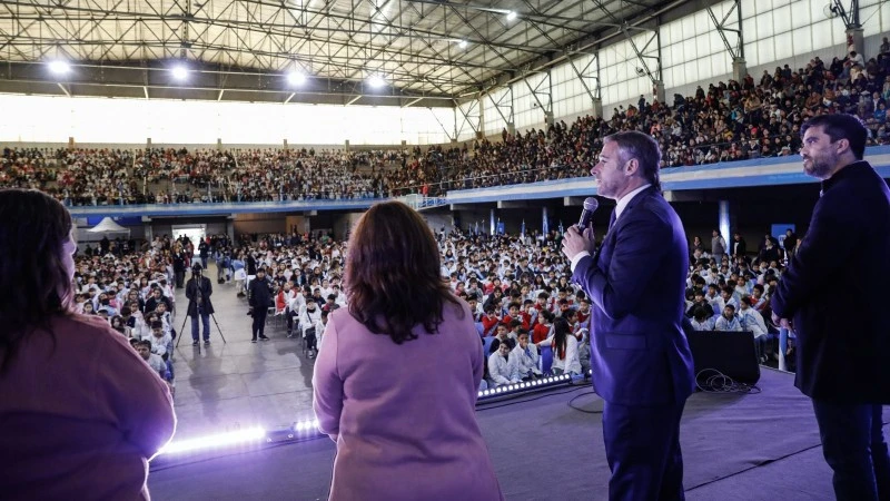 Fueron más de 8 mil los alumnos de escuelas locales que colmaron el Microestadio Municipales para participar de un acto lleno de emoción “y compromiso con la historia y los símbolos que nos unen y nos representan como comunidad”, señalaron desde el Municipio, a través de un comunicado.