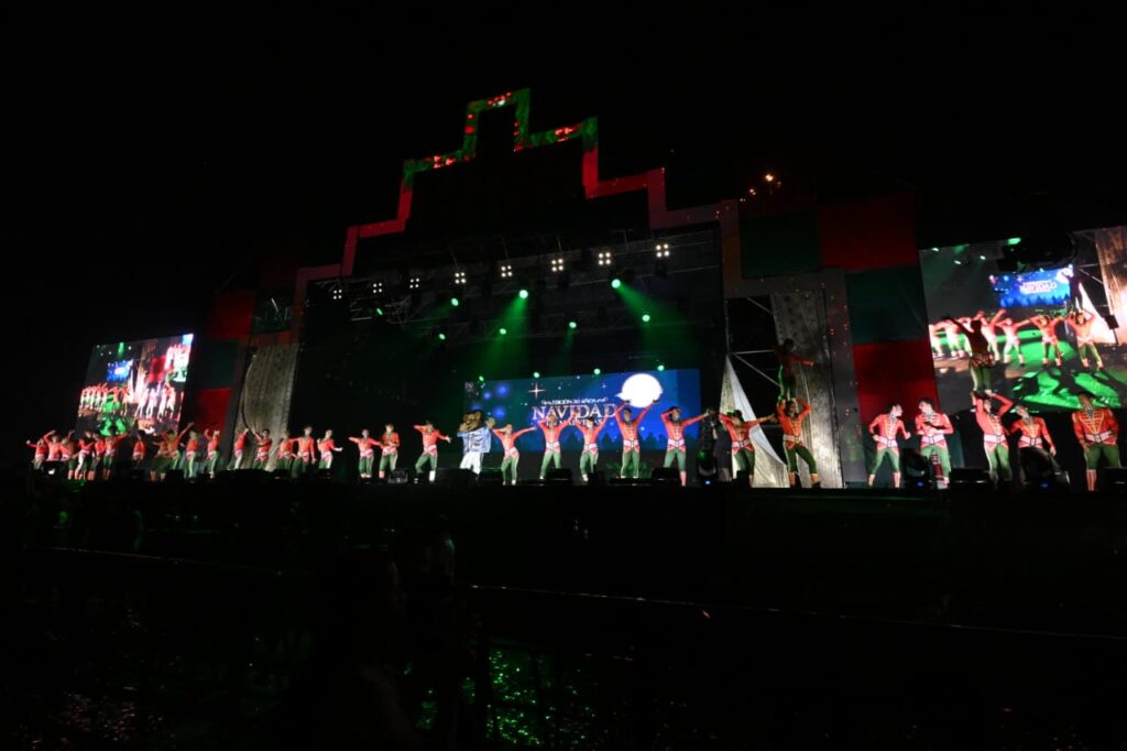 El espectáculo de primera calidad reunió música, danza y un despliegue de color con más de cien artistas en escena. La magia se hizo presente con Papá Noel volando entre la multitud y un cierre musical de gran nivel a cargo de la joven artista Ángela Torres, que conmovió a todos con su voz. La gran sorpresa de la noche fue el show de drones que iluminó el cielo con figuras icónicas de la Navidad y de la identidad e historia malvinense, sorprendiendo y emocionando a grandes y chicos. La Sagrada Familia, el tren Belgrano Norte, Papá Noél, un enorme “Malvinas 30 Años”, son algunas de las figuras que se pudieron ver desde cada rincón del distrito.