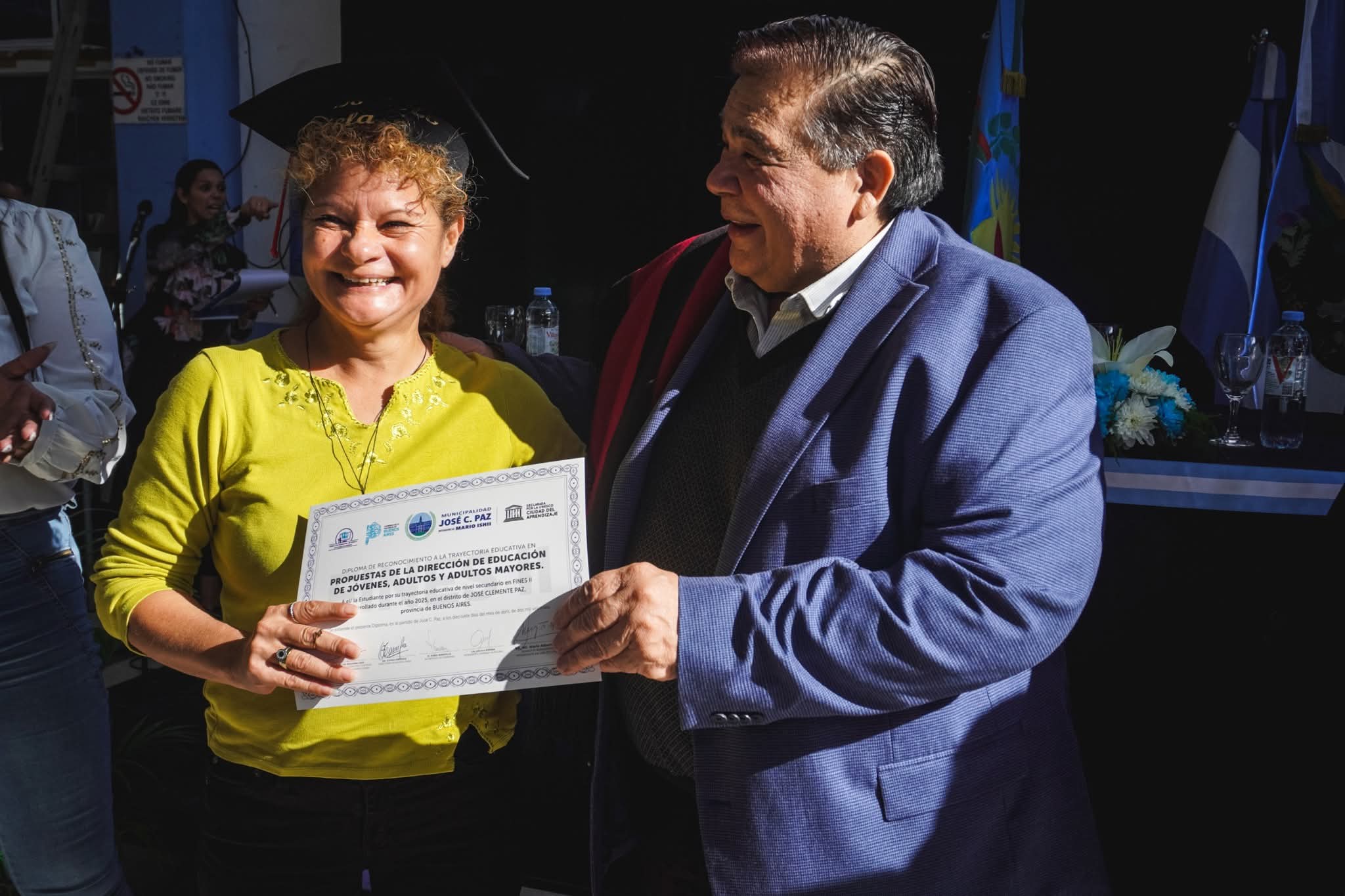 Del acto participaron el Secretario de Gobierno, Pablo Mansilla; la Directora Municipal de FINES II, Gladys Arriola; y la Inspectora de Modalidad Adultos y Centros de Educación Nivel Secundario (CENS), María de las Mercedes Lois, junto a referentes del área educativa municipal.