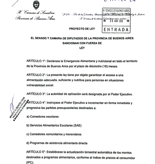 La iniciativa será debatida en la Legislatura bonaerense en las próximas semanas, en un contexto marcado por la preocupación creciente de distintos actores sociales ante el aumento de la pobreza y la inseguridad alimentaria.