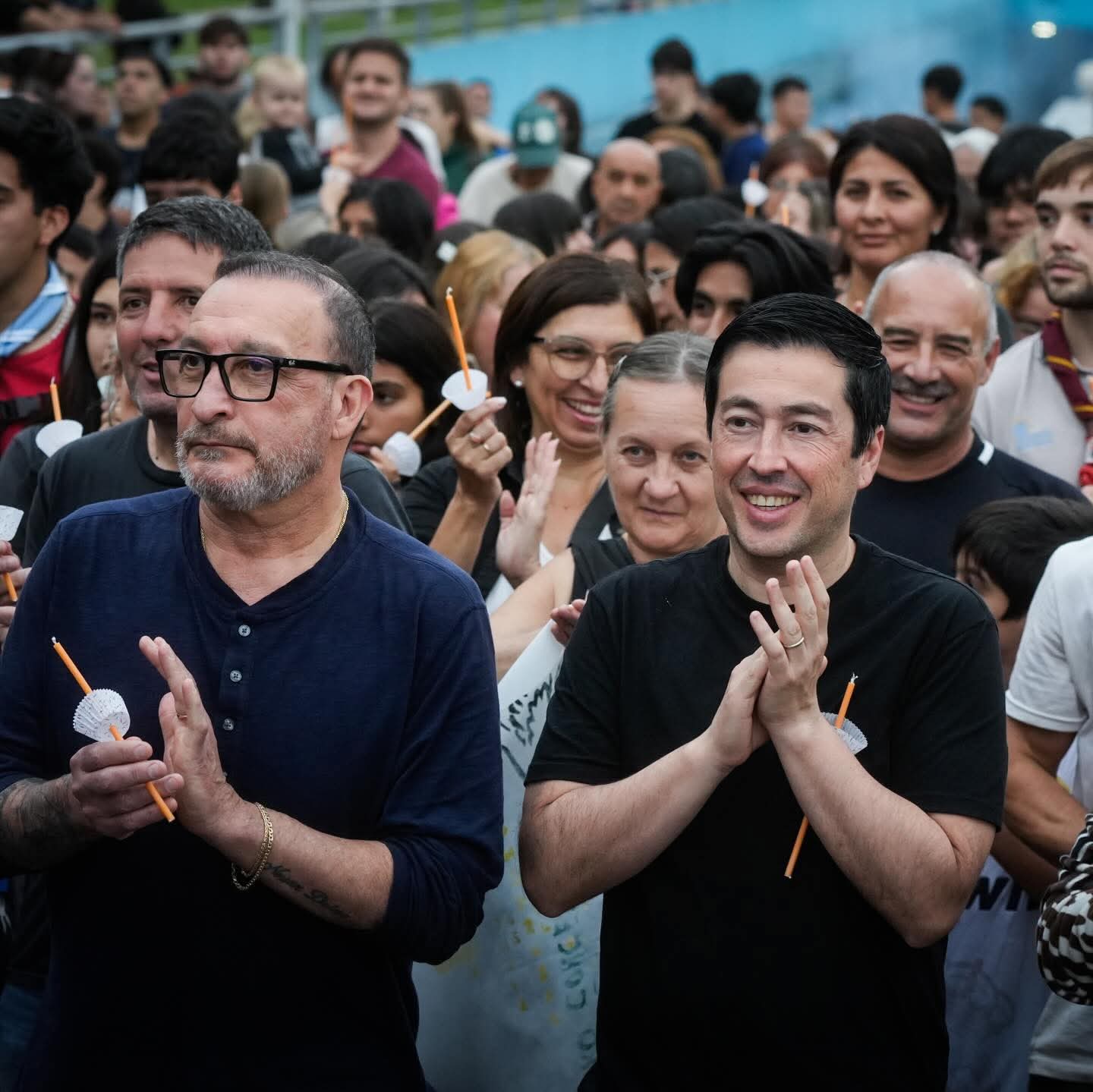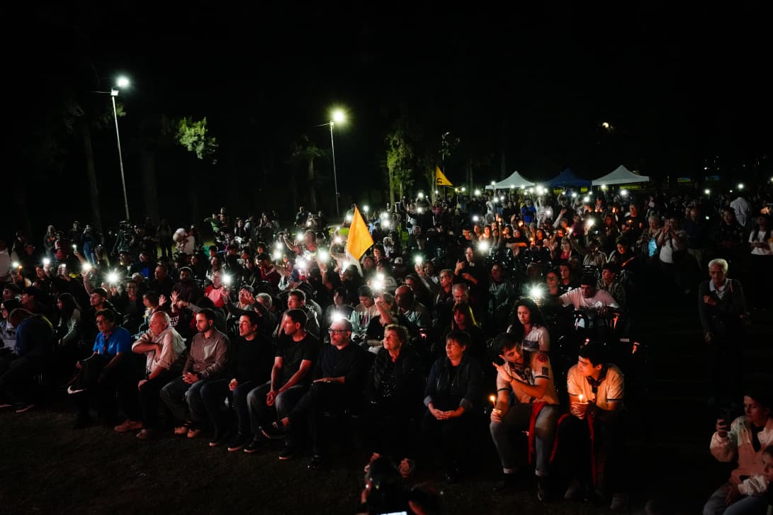Además, se realizaron los simbólicos gestos de La Cruz, La Luz y la Fraternidad, que invitaron a los presentes a recorrer el túnel y compartir experiencias de fe y comunidad. Cada uno acompañado por mensajes de Francisco que resaltaron valores como mantener la felicidad y la chispa, ser protagonistas y dejar huella con nuestras acciones, reconocer la importancia de cada persona y de la ternura en el día a día, reforzando la invitación a construir juntos una sociedad más unida.