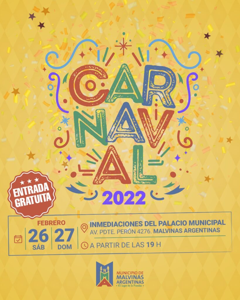 El Carnaval de la Familia que ya es un clásico en el distrito se hará el sábado 26 y domingo 27 de febrero en las inmediaciones del Palacio Municipal de Malvinas Argentinas, Av. Pdte. Perón 4276.
