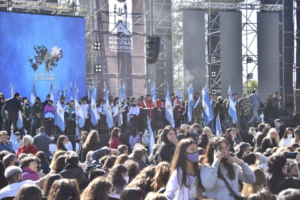 En el emotivo homenaje a los Veteranos y Caídos en las Islas, estuvieron presentes Axel Kicillof, Noe Correa, Leo Nardini y Luis Vivona. Sonaron la banda de música militar, Daniel “Pipi” Piazzolla y su orquesta, y el Himno Nacional Argentino, estuvo a cargo de la cantante Sandra Mihanovich.