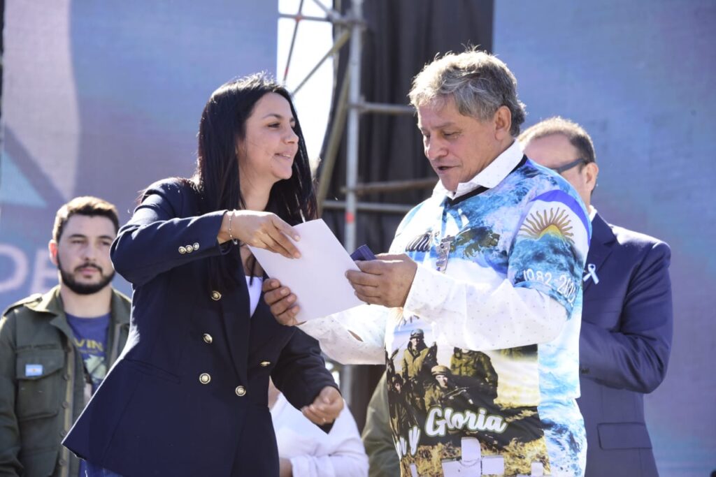 Luego, se hizo el descubrimiento de un monumento y de una placa conmemorativa para los Veteranos y Caídos en Malvinas. A lo largo del encuentro, se hizo entrega de medallas del Instituto de Previsión Social a ex soldados conscriptos y civiles que participaron en la guerra.